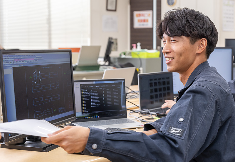 土木の仕事は、重機を動かすイメージが強かったのですが、実際に現場に入ってみると、現場代理人の仕事は測定や管理業務などが多く、想像とは全く違いました。現場に出ていないところでも、裏で多くの作業や調整が行われていて、「こんなに大変なんだ」と驚いたのを覚えています。現在は先輩について、写真撮影や書類管理、測定などの補助をしながら仕事を学んでいます。